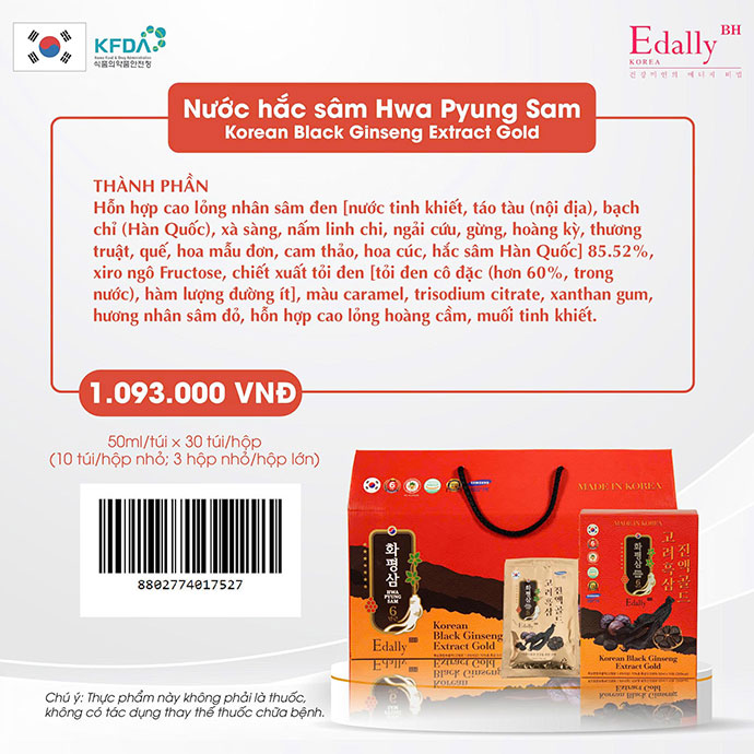 >>> Xem thêm Hắc Sâm Edally Hàn Quốc (Hwa Pyung Sam Edally)