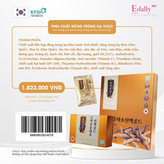 Tinh Chất Đông Trùng Hạ Thảo Hwa Pyung Sam Edally Hàn Quốc được nhà sản xuất bảo hành sản phẩm chính hãng.
